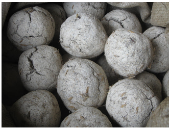 Men Hồng Mi sau khi được vo tròn chuẩn bị đem phơi gió