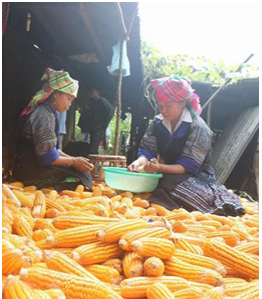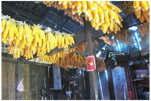 Ngô sau khi thu hoạch được cất trữ trên gác nhà